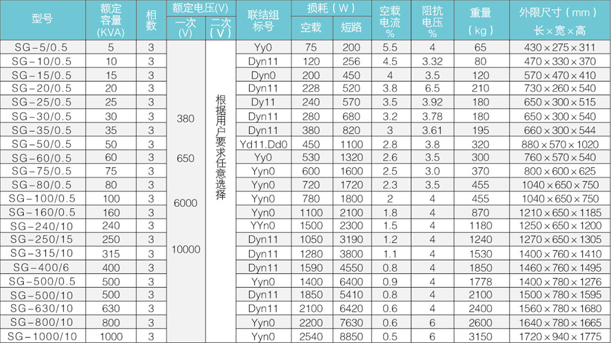1, product model 2, rated capacity 3, high and low voltage 4, connection group 5, impedance voltage